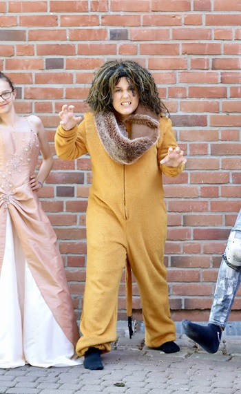 Unterwegs trifft sie auf die Vogelscheuche Carl, die weder ihren Namen noch sonst etwas behalten kann. Denn Carl hat ja nur Stroh im Kopf. Plötzlich entdeckt Carl eine riesengroße Blechdose. Das kann nur Rosti sein, der Blechmann, der von der bösen Hexe Regula verzaubert wurde. Etwas Öl auf die Blechdose und schon geht's los. Mit seinem Song „Cool - hart - clever und smart" macht Brusko, der Löwe auf dicke Hose. Wo er doch nur ein ängstlicher Löwe ist, der sich gerne vom großen Zauberer von Oz ein wenig Mut zaubern lassen möchte.